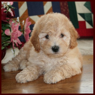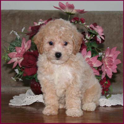 | What is the Bichon Poodle, Bich poo or Poochon dogs like? The Bichon Poodle, Bich poo or Poochon puppy combines the outstanding characteristics of the Bichon Frise and the Toy or Mini Poodle Breeds. Bichon Characteristics: Gentle mannered, sensitive, playful and affectionate. Bichons are extremely intelligent and adaptive with unique personalities and make the ideal companion for all ages, especially kids and even other animals! Bichons are full of love to give and life to live! A cheerful attitude is the hallmark of the breed. They are hypo-allergenic and do not shed, so need regular grooming. The Sweet Natured Bichon with its self-assured, important manner could fit into any home where a dog with a lot of love and loyalty is desired. Toy or Mini Poodle Characteristics: Proud and dignified, with elegant carriage, the Toy or Mini Poodle dog breed is intelligent and full of liveliness and perkiness. The Toy or Mini Poodle has an athletic history in its genes, having been bred from working retriever stock, and it moves with a springy, effortless gait. The Toy or Mini Poodle is eager to please and easy to train. Their coat which is hypo-allergenic non- shedding requires brushing twice a week and clipping every two months. Toy or Mini Poodles are a good tempered breed and are devoted to their families. Affectionate with their owners. As Bichon Poodle breeders, it is our goal to raise happy, healthy Bichon Poodle, Bichpoo or Poochon puppies that will fill the spot of best friend to their new owners. -------------------------------------------------------------------------------- As you look through the photos on different breeders websites, one might notice that the look of the Poochon can vary widely, based on the quality of their parents. The Poochon puppies shown below are typical of what you will find with one of our Rolling Meadows puppies. They are the product of careful, thoughtful breeding. We are committed to breeding a healthy, sweet tempered Poochon who is also cute! Our puppies are from Bichon Frise and Toy Poodle purebreds who are AKC registered and have some Champion bloodlines in their pedigrees. ____________________________________________ What will my Bichon Poodle look like as an adult? As the Bichon Poodle puppies becomes an adult, their appearance does not change much. They retain their puppy look throughout adulthood and will retain much of their puppy color pattern. Their hair will continue to grow (since they are non-shedding) and will need to be trimmed in a puppy cut if you like the shorter haired look. The Apricot/White puppies will usually lighten some in color as they get older. A puppy with black markings may turn lighter or stay black as they get older. The Dark Carmel Color will fade lighter as the puppy matures. The darker Apricot puppies normally stay darker as they mature. Though the adult look of a Bichon Poodle can be harder to predict that the appearance of a purebred Bichon or Toy or Mini Poodle, they always end up looking cute as a button:) The average adult weight of the featured puppies will be 12-18 pounds. The photos shown below are of our previous litters of Bichon Poodle, Bichpoo or Poochon puppies. These Poochon Puppies are not for sale, as they are already in the homes of their forever families. |